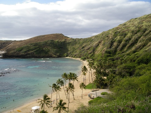 Einer meiner Lieblingsplätze auf ganz Hawaii ist die Hanauma Bay im Osten Oahus. Die Hanauma Bay ist halbrund und eigentlich ein versunkener Vulkan. Hier finden sowohl Taucher wie auch Schnorchler, vom Anfänger bis zum Fortgeschrittenen, ein kleines Paradies vor. Die vielen bunten Fische sind sehr zutraulich, die Bucht ist in Strandnähe recht seicht und daher auch für weniger Geübte gut geeignet.