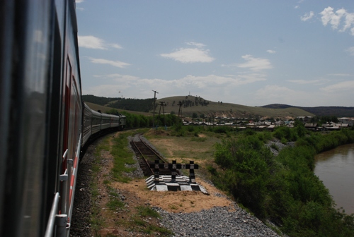 Jede Zugstrecke hat wohl ihre typische Landschaft. Von Moskau nach Irkutsk waren es ja die Birkenwälder. Nun von Irkutsk nach Ulan Bator wurde die Landschaft viel abwechslungsreicher und offener. Zudem hatte es auch immer wieder mal Hügel und es kamen viel mehr Dörfer. Je näher wir an die Mongolei kamen, desto trockener wurde es und die Landschaft glich teilweise einer Steppe. Wo vorher grünes Gras war, war es nun eher trocken und gelb. Allerdings sahen wir immer wieder Seen und Flüsse. Im Vergleich zur ersten Strecke war es definitiv viel Abwechslungsreicher und daher interessanter.