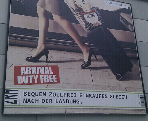 Nun kann man(n) und Frau auch bei der Ankunft am Flughafen Zürich duty-free shoppen. Der zollfreie Einkauf ist nach der Gepäckausgabe. Dafür muss allerdings ein Umweg in Kauf genommen werden.