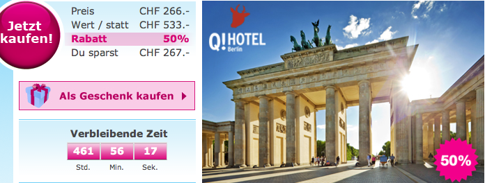 Wir waren über das Wochenende in Berlin und haben das Q! Hotel am Ku’Damm getestet. Ein Designer-Hotel mit einem sehr guten Preis-Leistungsverhältnis. Bei DeinDeal gibt es momentan einen 50% Gutschein für das Hotel: CHF 266.00 statt CHF 533.00 für 2 Übernachtungen für 2 Personen inklusive reichhaltigem Frühstücksbuffet. Das Buffet lässt definitiv keine Wünsche offen, wer will bekommt neben Lachs sogar Vodka zum Frühstück – nicht irgend einen, sondern Belvedere Vodka. Zusätzlich erhält man bei dem Angebot einen Konsumationsgutschein von 40 Euro für Essen und Getränke.
