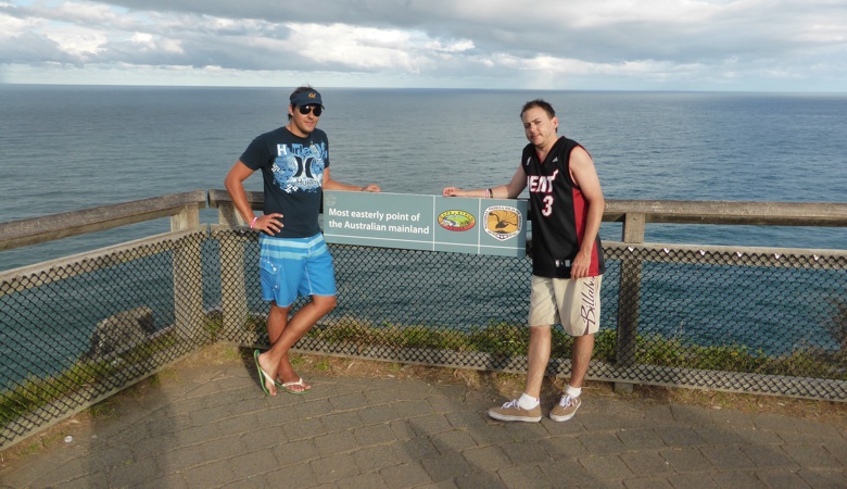 Da wir keine bezahlbare Unterkunft in Byron Bay finden konnten entschieden wir uns am Montag für einen Tagesausflug. Alle Hippies die wir bis dahin angetroffen haben waren angetan von dem Ort und deshalb waren unsere Erwartungen gering. Nach 1.5 Stunden Autofahrt kamen wir im verschlafenen Fischerdorf an und wir waren doch eher positiv überrascht vom Anblick. Ab an den Strand und erstmal ein bisschen chillen um dem lokalen Stil gerecht zu werden. Auf die bewusstseinserweiternden Mittel verzichteten wir dann, wollten wir doch das Lighthouse mit dem eigenen Auto erreichen und nicht dahin fliegen. Gleich beim Lighthouse befindet sich auch der östlichste Punkt von Australien. Kurz posen und somit können wir auch diesen Meilenstein von der Bucketlist streichen.