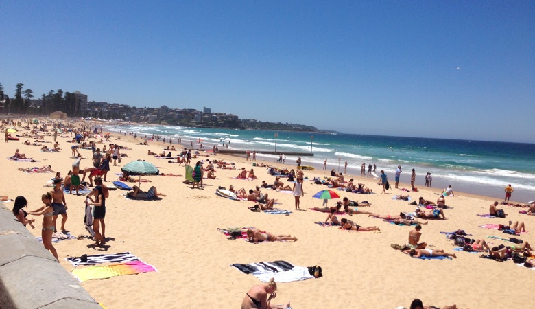 Am Samstag gegen Mittag stand der Besuch von Manly auf dem Programm. Therese, die wir in Surfers kennengelernt hatten, war mittlerweile auch in Sydney eingetroffen und begleitete uns. Die halbstündige Überfahrt mit der Fähre ist gleichzeitig eine Sightseeing Tour. Das Wasser war deutlich kühler als noch an der Goldküste, aber eine willkommene Abwechslung und so genossen wir den Nachmittag am Manly Beach. Vor der Rückfahrt genehmigten wir uns noch ein Glace, natürlich bei Ben & Jerry’s. Zum Nachtessen gingen wir wieder in die Stanley Street, entschieden uns aber für einen Italiener (Trovata), was eine exzellente Wahl war. Den Abend wollten wir drei GlamPacker noch mit dem Besuch einer der Top 5 Rooftop Bars veredeln. Allerdings war die Terrasse des Hotel Sweeney’s nicht auf einem Hochhaus und eher eine Dachterrasse mit Bar, aber wir hatten mit Therese, wie bereits in Surfers, einen sehr angenehmen Abend.