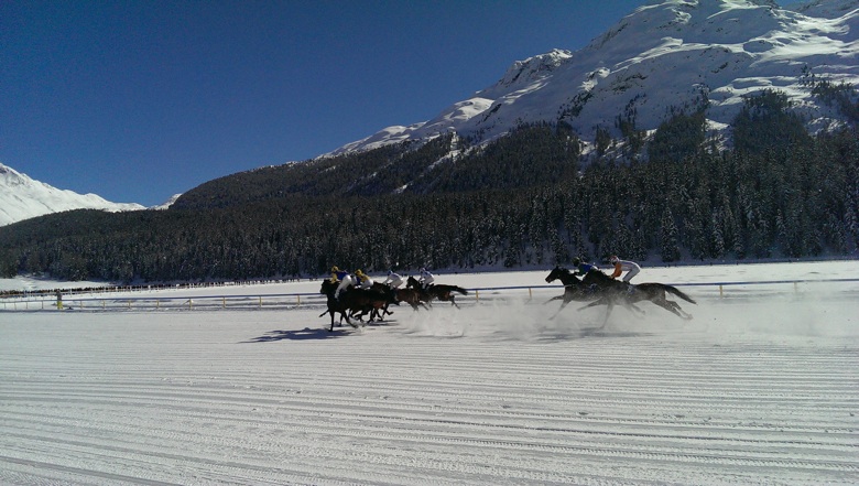 Vor traumhafter Bergkulisse und auf dem gefrorenen See in St. Moritz findet alljährlich an drei Rennsonntagen im Februar das White Turf statt. Die einmalige Kombination aus spannenden Trab- und Galopprennen sowie dem spektakulären Skikjöring zieht nicht nur Pferdeliebhaber und Rennsportfreunde aus der ganzen Welt an, sondern auch zahlreiche Prominente, Reiche und Schöne sowie Pelzträger.